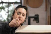 Apprentice and designer Kelly Walker uses a fine line brush to paint a piece of antique furniture, Jan. 10, 2018. Eric Bonzar — The Morning Journal